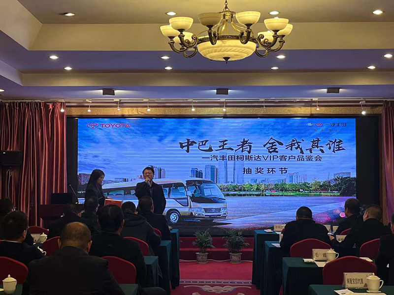 南通站于12月10日在南通文峰飯店圓滿召開 南通及周邊地區(qū)參會嘉賓對新款豐田柯斯達營運版認可度非常高 該車型聚焦了營運中巴市場熱度 訂單連連 供不應求,活動主旨是為了年底反饋新老客戶,擴大常州鎮(zhèn)江及周邊地區(qū)我司的市場影響力,及進一步擴大豐田柯斯達營運車的市場份額,在一汽豐田大客戶室的要求和支持下開展的。我們帶來了若干數(shù)量的營運版現(xiàn)車,也包括我們剛剛推出的高級外擺門版營運車,將給予用戶以最好、最優(yōu)惠的價格政策。